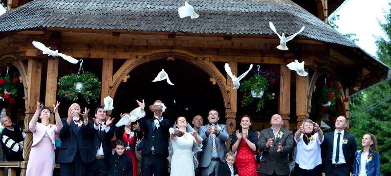 - Lansarea de porumbei albi se bucură de o popularitate imensă atât în mediul urban cât și în cel rural. Având în vedere că porumbeii își aleg perechea o dată în viață, majoritatea mirilor îi aleg să le poarte noroc și, hai să recunoaștem, pentru pozele minunate atunci când aceștia își iau zborul. La nunta noastră am primit cadou această lansare. A fost o surpriză plăcută pentru toată lumea și îți mulțumim încă o dată, Kalmar Kristian.